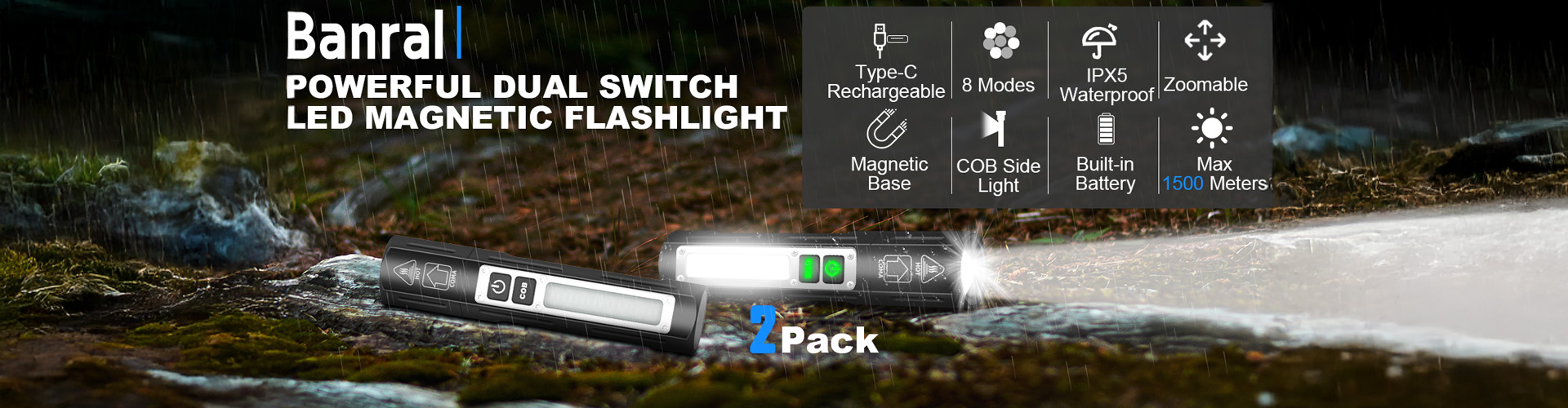 Long Range LED Flashlight, Super Bright High Power Magnetic Flashlight, Small Pocket Flashlight, TYPE-C Rechargeable, Weather & Shock Resistant, IPX5 Waterproof, Dual Switches Design, 8 Light Modes, Zoomable Adjustable Focus